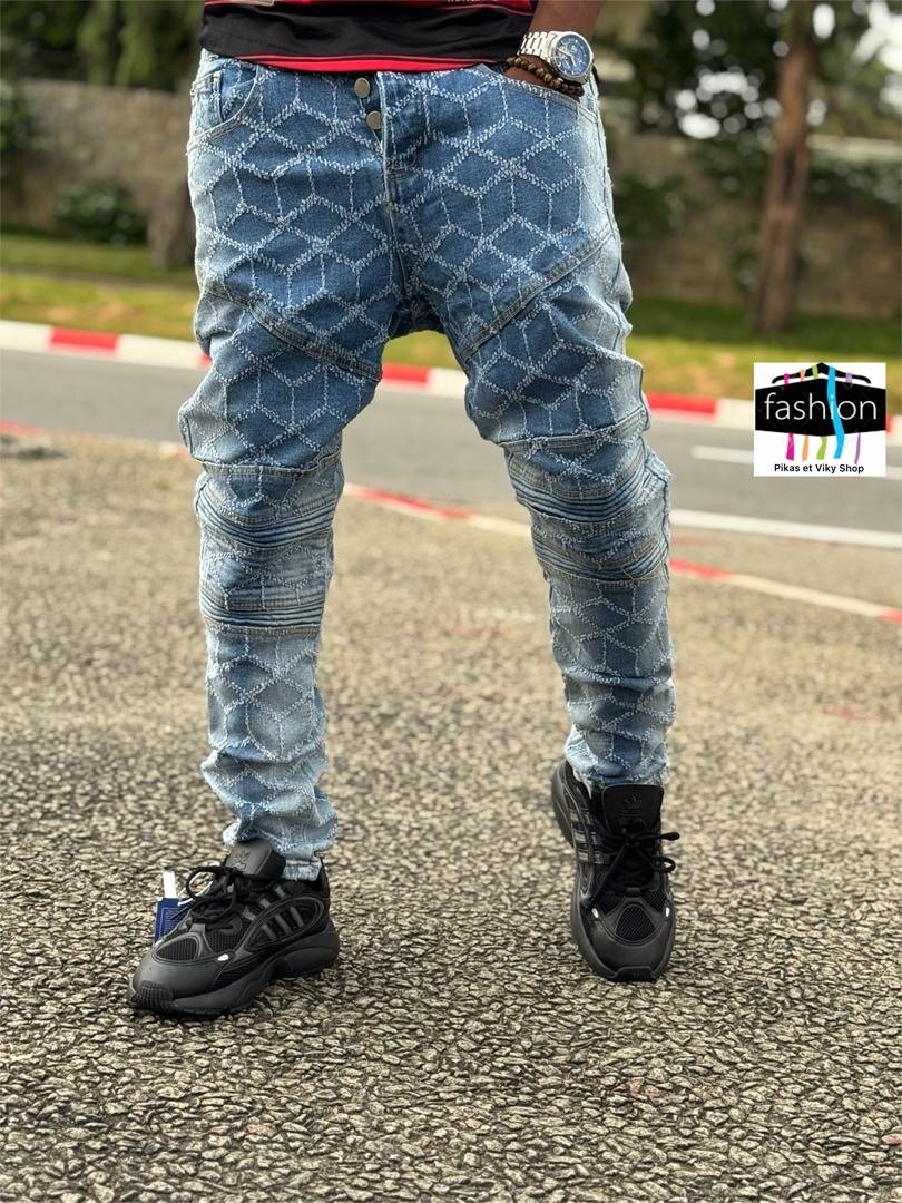 Ce jean décontracté pour homme allie style et confort avec son design unique en empiècements géométriques. Parfait pour un look casual et moderne, il est idéal pour une sortie entre amis ou une journée détente. Associez-le à vos baskets préférées pour un style impeccable.