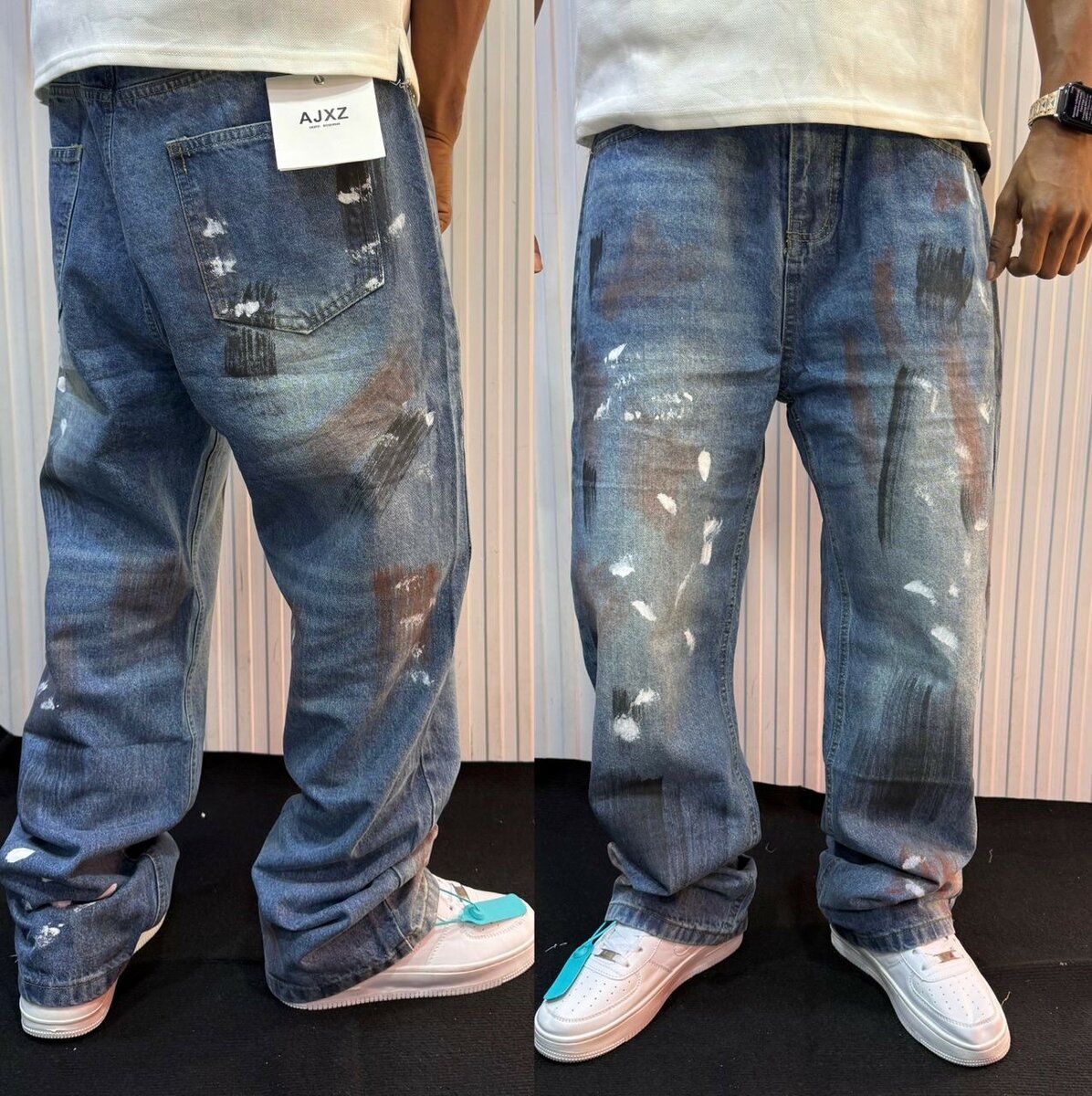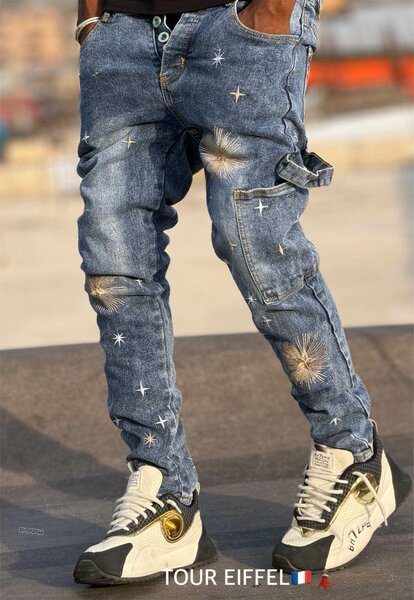 Découvrez ce jean décontracté, parfait pour un style urbain et branché. Doté de détails peints à la main, ce pantalon en denim ajoute une touche d'originalité à votre garde-robe. Il convient idéalement pour les sorties décontractées ou une journée en ville. Profitez du confort et d'un look tendance en toute occasion.