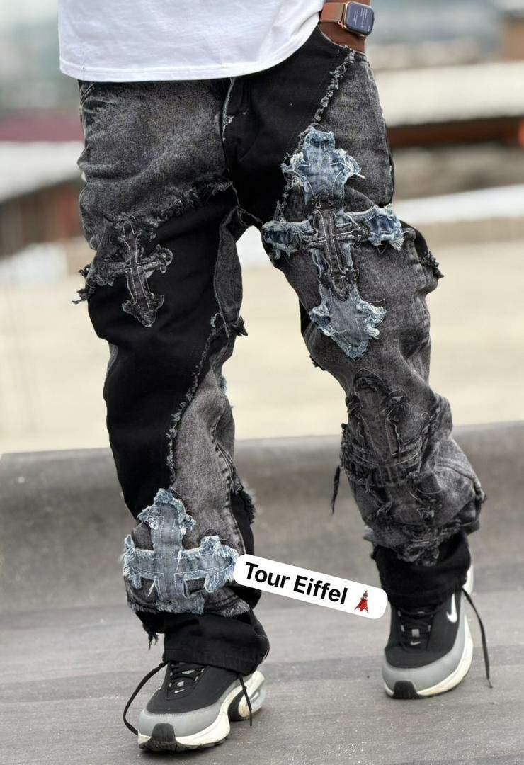Découvrez ce jean unique au style gothique, parfait pour ajouter une touche de caractère à votre garde-robe. Confectionné en denim robuste, il se distingue par ses motifs croisés accrocheurs et son design décontracté. Idéal pour les sorties urbaines ou les événements décontractés, ce pantalon assure une allure tendance et distinctive. Enfilez-le pour exprimer votre style audacieux dès aujourd'hui!