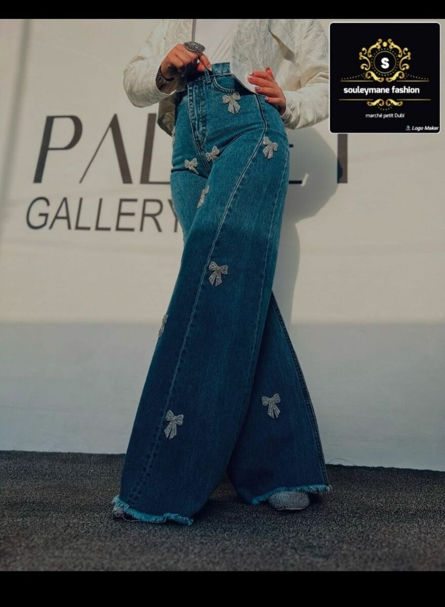 Apportez une touche de style unique avec ce jean évasé orné de broderies en forme de papillons. Confectionné dans un denim de haute qualité, il assure confort et durabilité. Idéal pour un look bohème chic, ses motifs délicats ajoutent une note artistique à votre garde-robe. Parfait pour un usage quotidien ou une sortie spéciale, ce pantalon saura captiver les regards. Se marie parfaitement avec des hauts simples pour mettre en valeur ses détails raffinés. Taille disponible : S à L.
