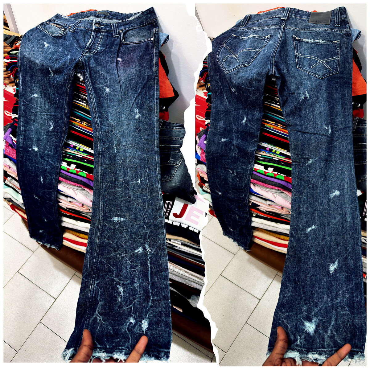 Adoptez un look audacieux avec ce jean évasé déchiré. Fabriqué avec un denim de haute qualité pour un confort maximal et une coupe flatteuse. Idéal pour un style décontracté ou une soirée entre amis.