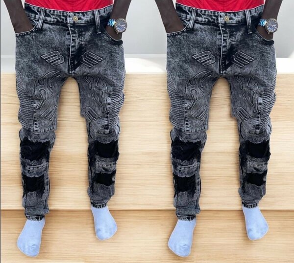 Découvrez ces jeans en denim noir pour homme avec effets déchirés et style moderne. Parfaits pour un look décontracté ou urbain, ces jeans ajoutent une touche tendance à votre garde-robe. Idéal pour les sorties ou les occasions quotidiennes.