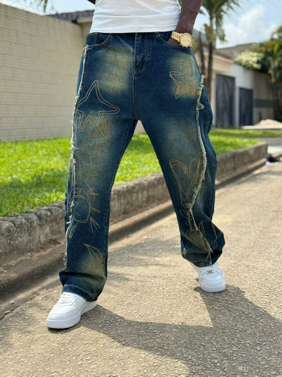 Découvre notre jean homme stylé avec motifs graphiques uniques. Parfait pour un look décontracté et tendance, il se marie idéalement avec des baskets. Fabriqué en denim de haute qualité pour un confort optimal.