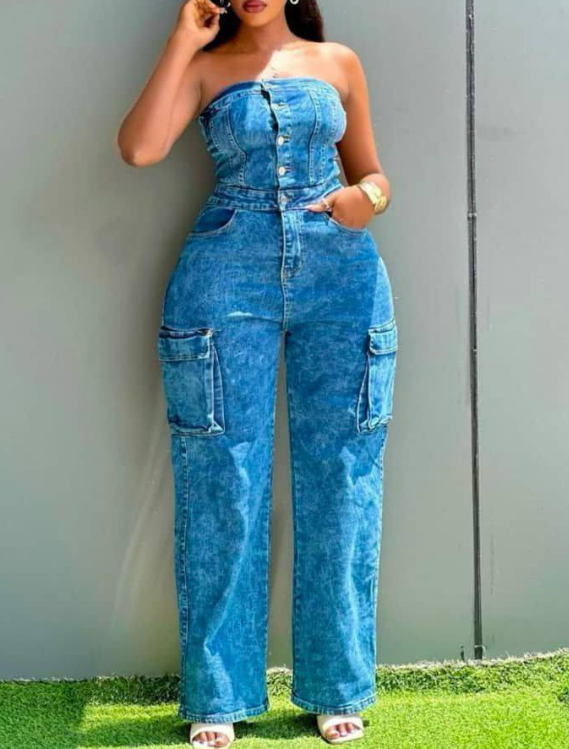 Beautiful and stylish women's denim jumpsuit blue