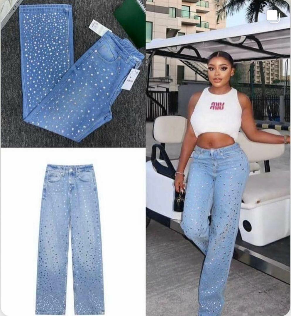 Découvrez le jean large à strass, parfait pour une touche d'élégance au quotidien. Fabriqué en denim de haute qualité, il allie confort et style avec des détails scintillants uniques. Idéal pour une sortie entre amis ou une occasion spéciale, ce pantalon se porte facilement avec des talons ou des baskets. Une pièce maîtresse pour toute garde-robe moderne et chic.