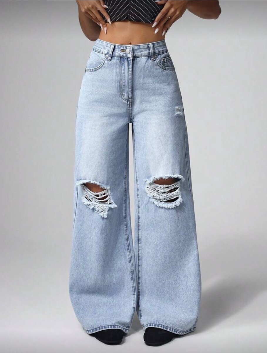 Adoptez un look audacieux avec ce jean large déchiré pour femme. Fabriqué en denim de qualité, il assure un style à la fois confortable et tendance. Parfait pour un look décontracté ou une sortie en ville, ce jean deviendra rapidement un incontournable de votre garde-robe.