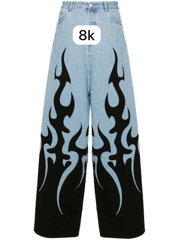 Ajoutez du style à votre garde-robe avec ce jean large orné de motifs de flammes bleues. Fabriqué en denim de haute qualité, il est à la fois confortable et à la mode. Parfait pour une tenue moderne et audacieuse. Idéal pour les sorties entre amis ou les festivals.