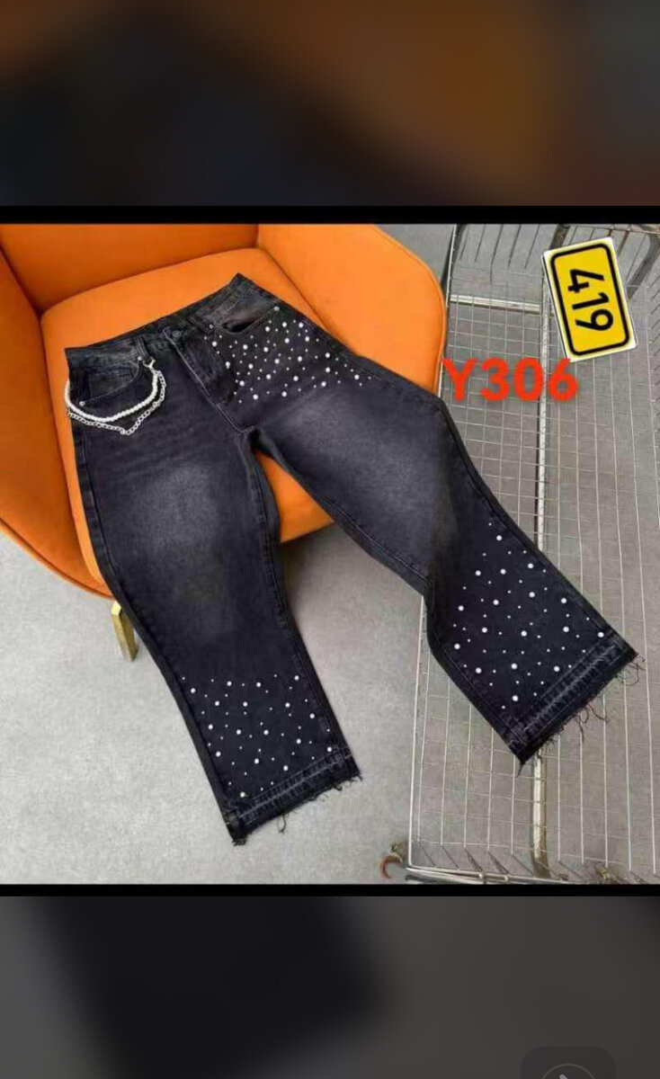 Élégant jean noir pour femmes, orné de perles scintillantes et ourlet effiloché tendance. Parfait pour un look chic et décontracté, idéal pour des sorties en soirée ou un style quotidien audacieux.