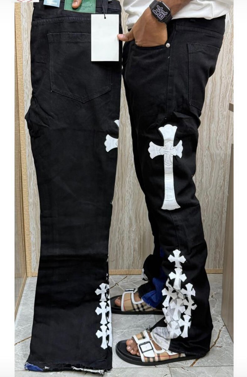 Découvrez ce jean noir unique avec des broderies en forme de croix blanches, parfait pour une touche tendance et audacieuse à votre look. Conçu pour assurer confort et style, ce jean est idéal pour une sortie entre amis ou une occasion décontractée. Son design distinctif en fait un choix incontournable pour ceux qui souhaitent se démarquer.