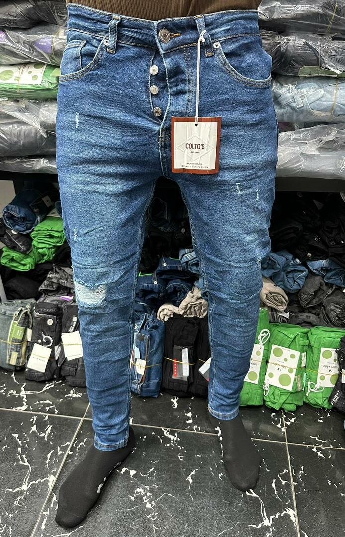 Ces jeans slim pour hommes offrent un style moderne avec leurs détails légèrement déchirés. Fabriqués en denim de qualité, ils assurent confort et durabilité. Idéal pour un look casual ou urbain, associé à des sneakers ou des boots. Un incontournable pour votre garde-robe!