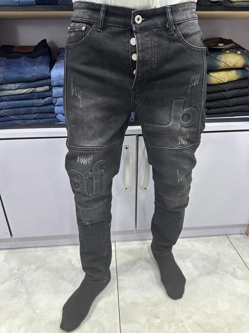 Découvrez ce jean slim noir pour homme, alliant confort et style avec ses détails uniques et sa coupe ajustée. Parfait pour une tenue décontractée ou un look plus sophistiqué. Fabriqué en matière résistante pour une durabilité accrue. Ajoutez une touche moderne à votre garde-robe.