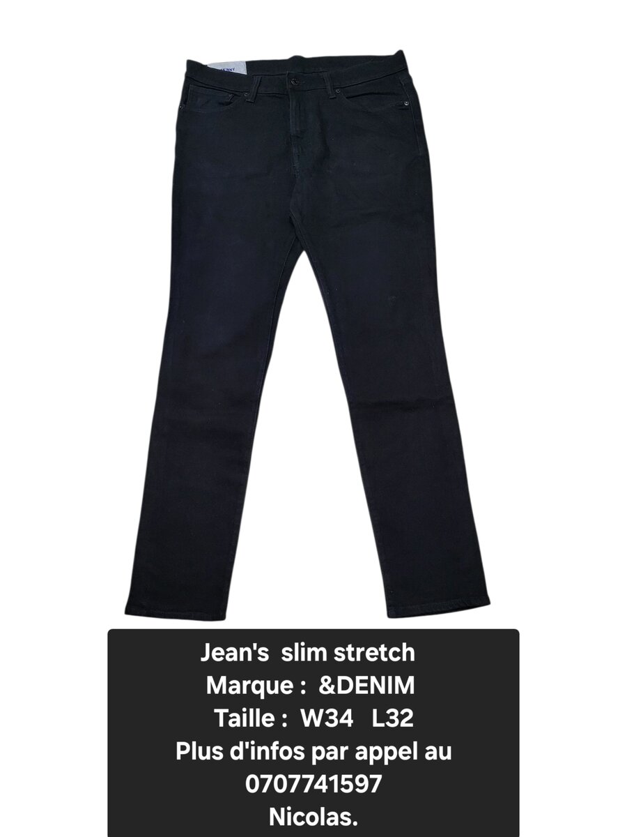 Ce jean slim stretch offre un confort optimal grâce à sa matière extensible. Idéal pour un look moderne et décontracté, il est parfait pour toutes les occasions. Disponible en taille W34 L32.