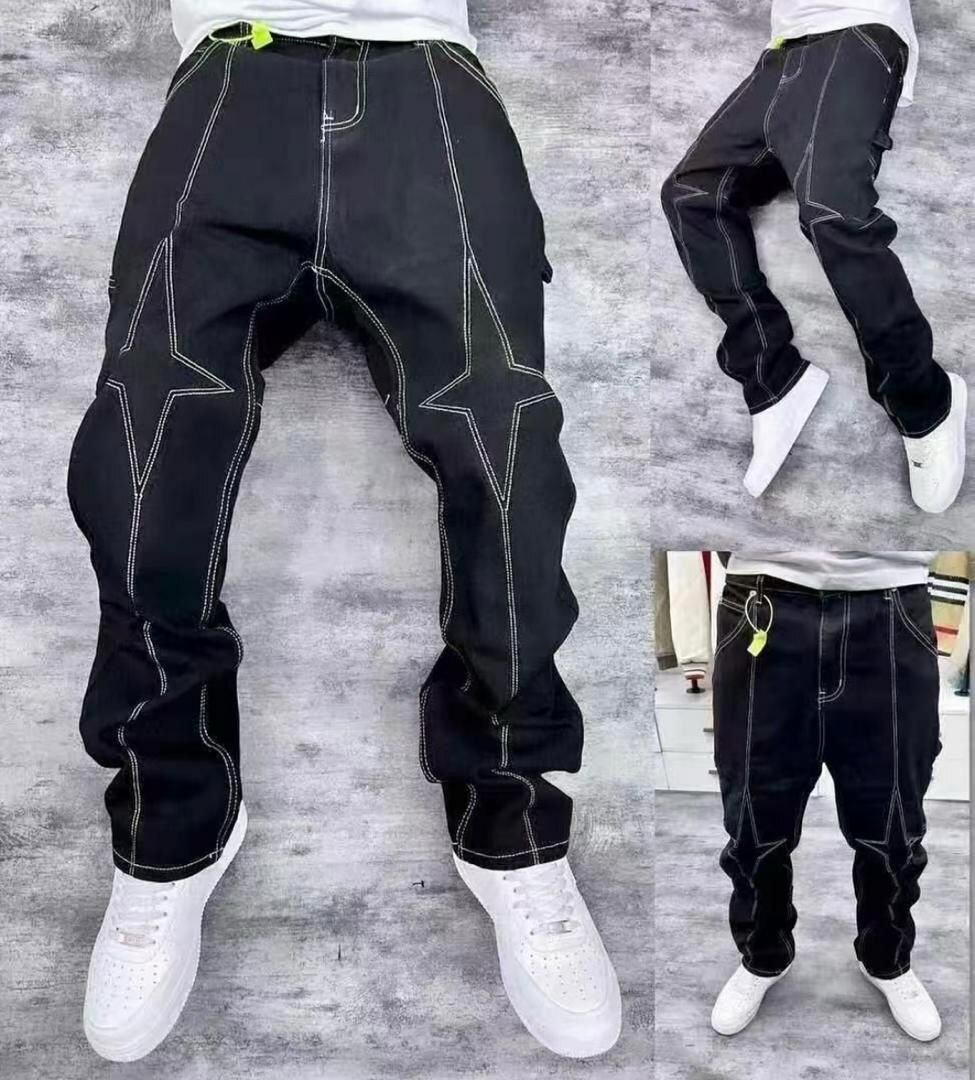 Découvrez ce jean noir pour homme, orné de coutures étoiles contrastantes. Idéal pour un look original. Confortable et stylé, il se marie parfaitement avec des baskets blanches pour une allure décontractée et moderne. Parfait pour les sorties en ville ou les occasions casual.