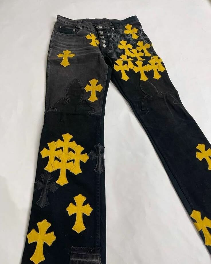 Découvrez ces jeans uniques avec des motifs croix colorés, parfaits pour afficher votre style audacieux. Fabriqués en denim de haute qualité, ils offrent un confort optimal et une allure tendance. Parfaits pour une sortie décontractée ou un événement stylé, ces jeans feront tourner les têtes. Disponible en plusieurs designs colorés. Exprimez votre personnalité avec classe et originalité dès aujourd'hui !