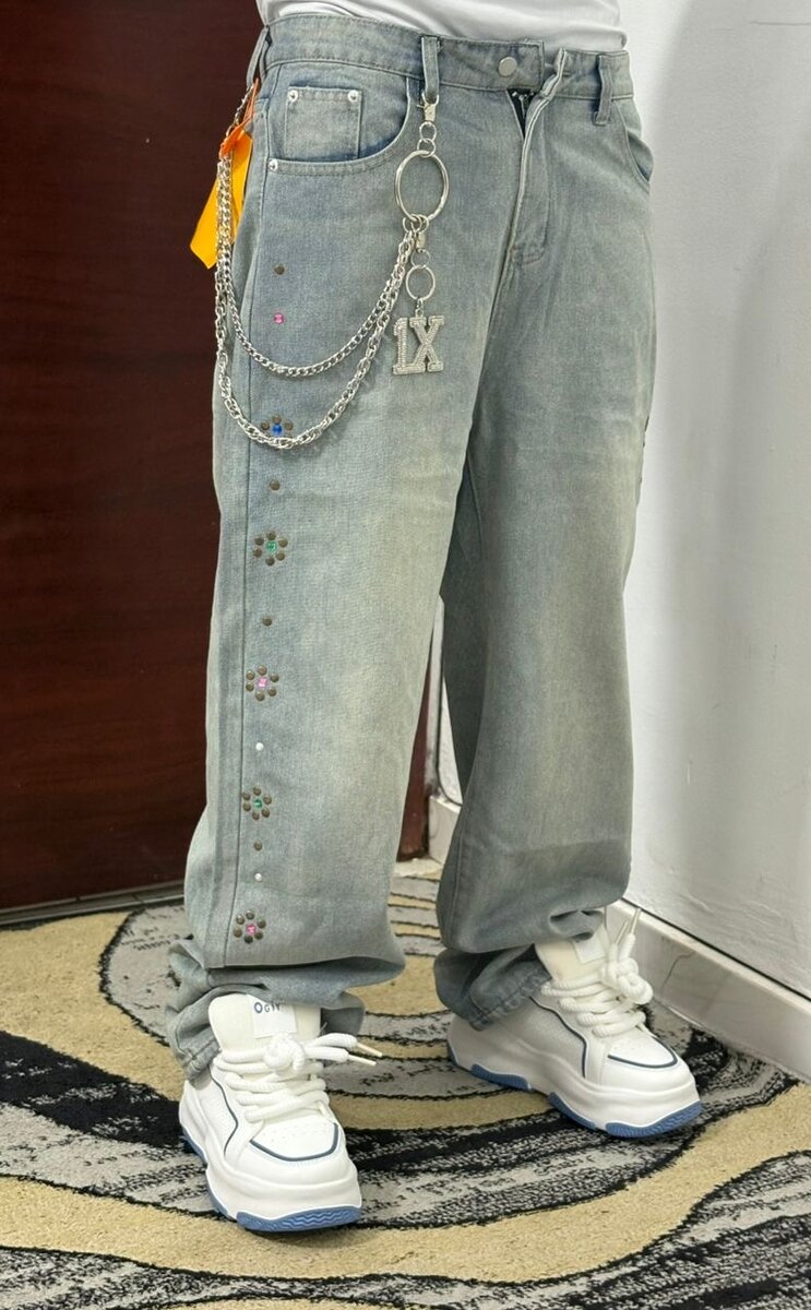 Optez pour un style audacieux avec ces jeans baggy adaptés au quotidien. Ornées de motifs uniques et de chaînes décoratives, ces pièces allient confort et originalité. Parfaits pour compléter un look urbain décontracté, ces pantalons apportent une touche moderne et branchée à toute garde-robe. Idéal pour sortir ou profiter d'une journée de détente.