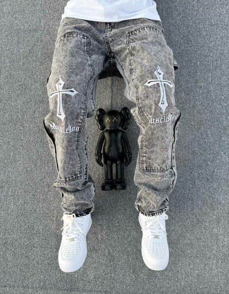 Jeans homme gris avec motifs