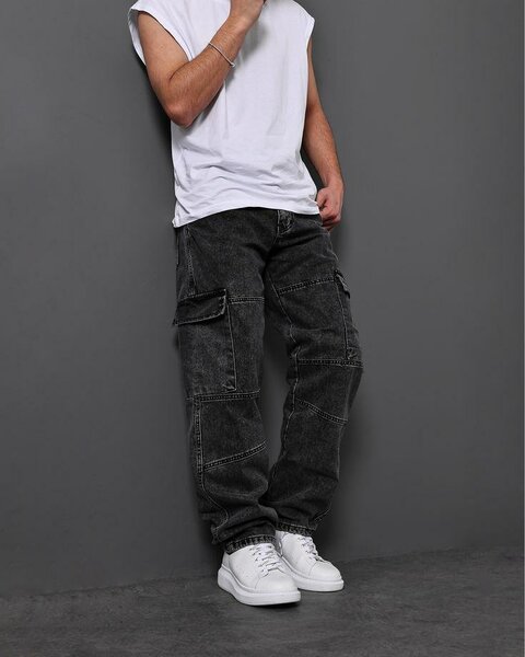Jean cargo noir homme