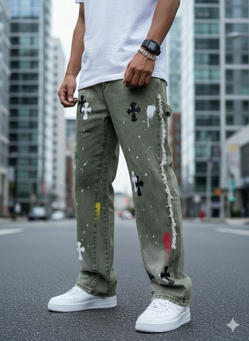 Découvrez nos jeans cargo décontractés au style urbain unique. Parfaits pour un look moderne et audacieux, ils allient confort et design original avec des motifs et des détails usés. Idéal pour les sorties en ville ou les occasions informelles. Affirmez votre style avec ces incontournables du streetwear.