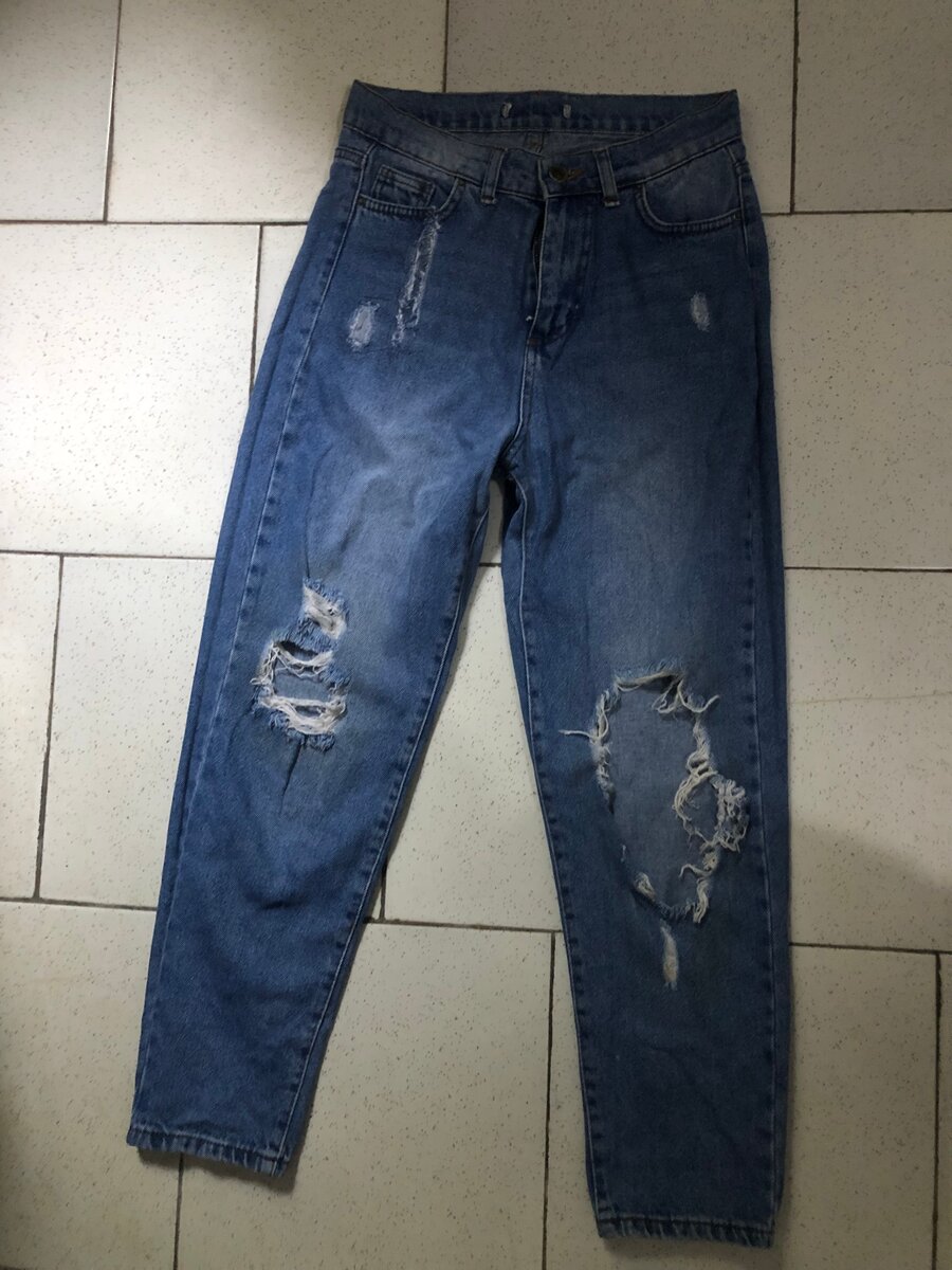 Adoptez un style audacieux avec ces jeans bleus déchirés. Conçus pour le confort avec une coupe moderne, ils sont parfaits pour un look décontracté. Fabriqués en denim de haute qualité, ces jeans sont durables et idéaux pour toutes les saisons. Associez-les avec votre haut préféré pour une tenue chic et cool. Disponible pour hommes et femmes, c'est le choix parfait pour tous ceux qui aiment le fashion avant-gardiste.