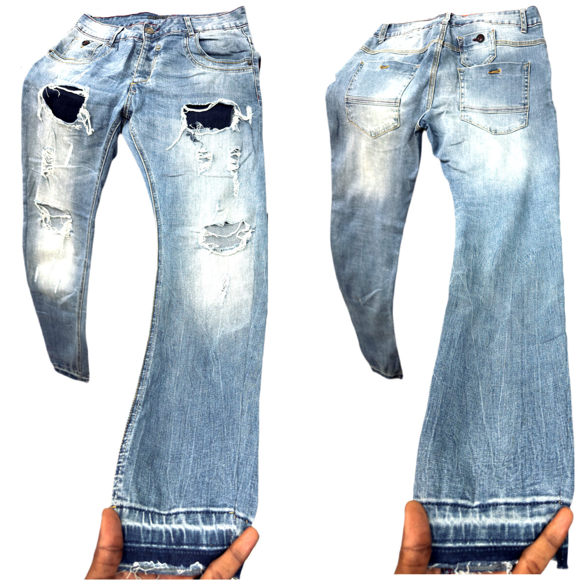 Adoptez un look moderne avec ces jeans déchirés en denim bleu clair. Confectionnés pour un confort optimal, ils sont parfaits pour une tenue décontractée. Idéaux pour être portés au quotidien ou dans des sorties entre amis, ces jeans ajoutent une touche rebelle à votre style.