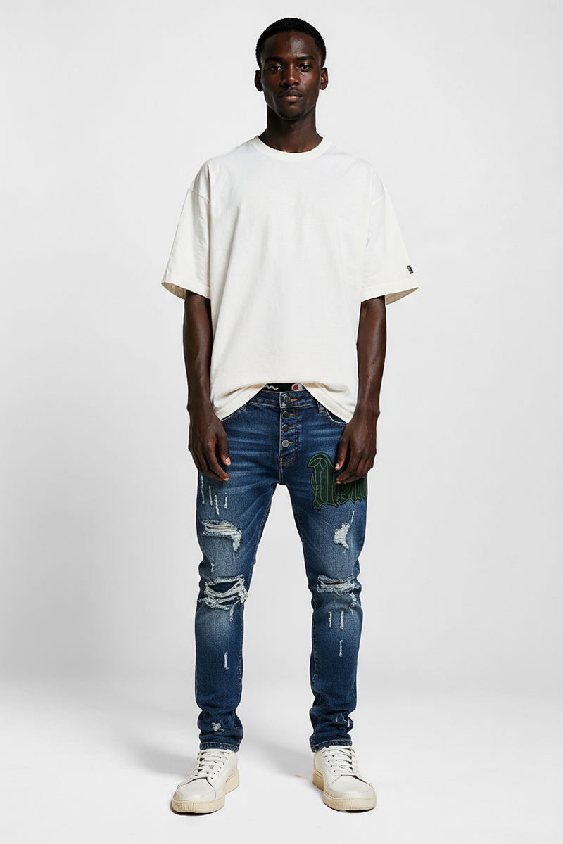 Optez pour un look moderne avec ces jeans déchirés pour hommes. Confortables et stylés, idéaux pour un style urbain.