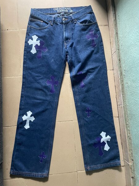 Jean bleu avec motifs croix