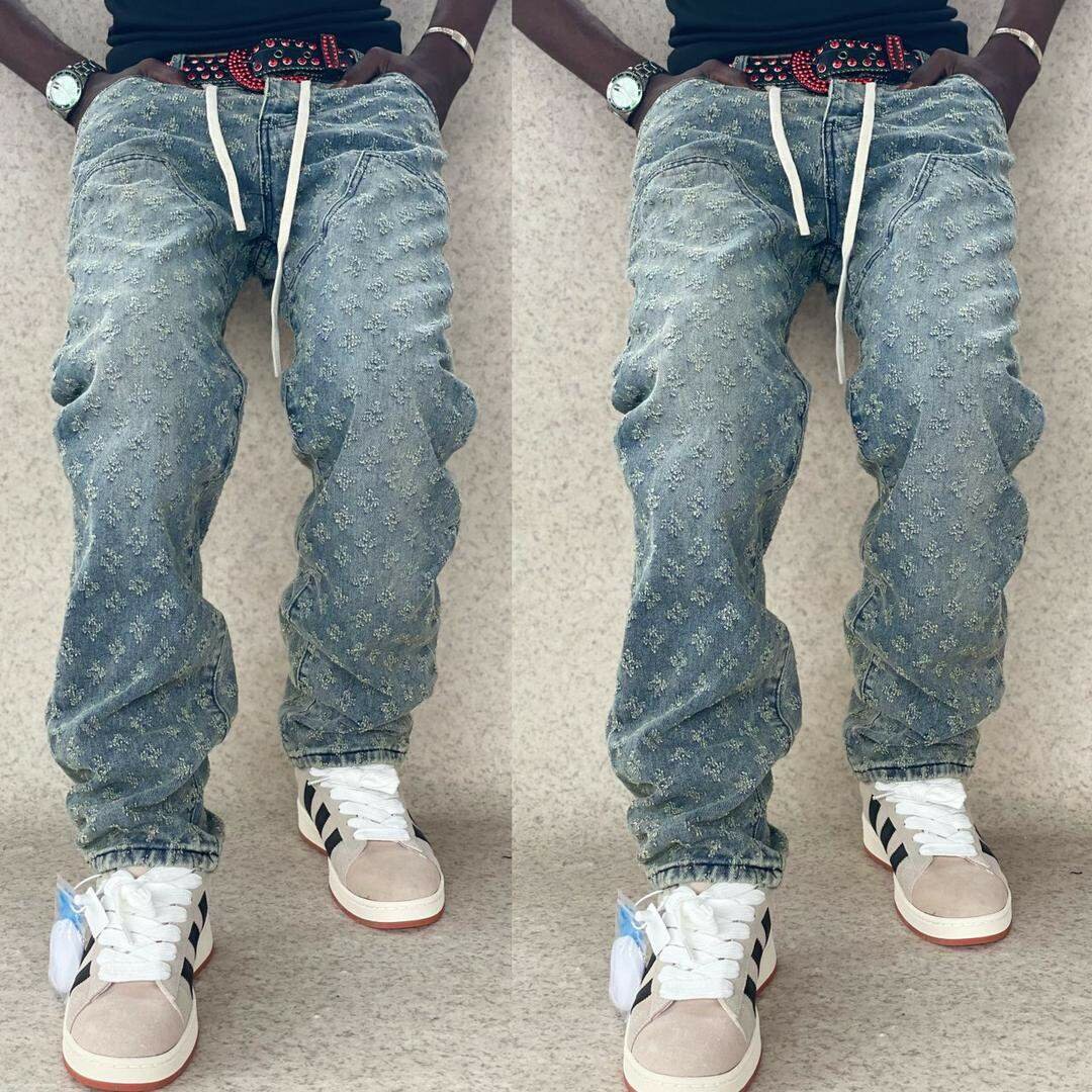 Jeans décontractés pour homme avec motifs originaux. Idéal pour un look tendance et confortable. Fabriqué avec des matériaux de qualité pour un style urbain.