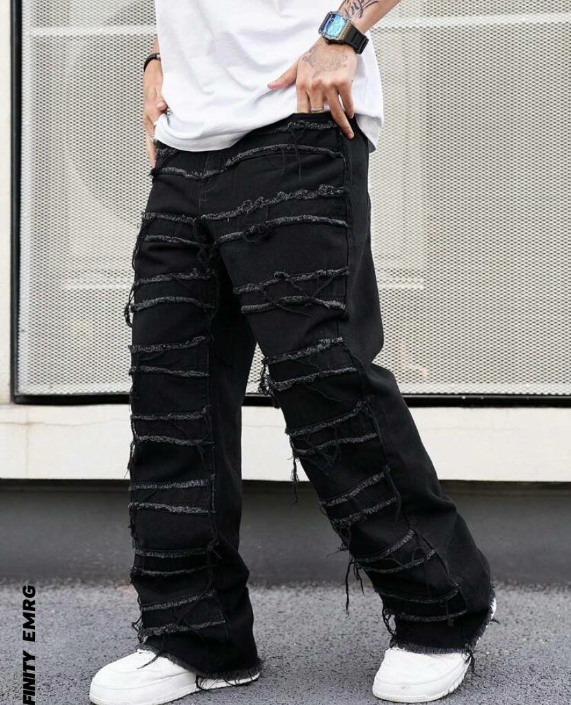 Découvrez ces jeans décontractés déchirés pour homme, parfaits pour un style urbain audacieux. Fabriqués en denim robuste, ils allient confort et tendance avec leur design unique et effiloché. Idéals pour un look casual-chic, portez-les avec un t-shirt ou une chemise. Un incontournable pour toute garde-robe moderne.