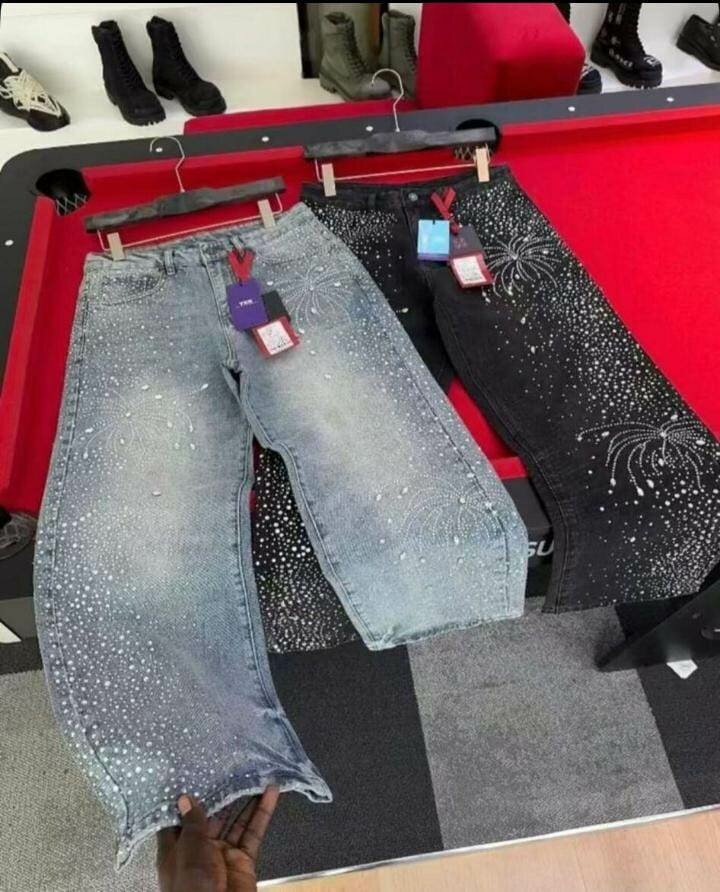 Découvrez nos jeans tendance avec des motifs en strass étincelants. Parfaits pour ajouter une touche de glamour à votre look quotidien. Disponibles en bleu clair et noir, idéals pour une soirée ou casual. Taille confortable et coupe moderne. Un incontournable pour chaque garde-robe!