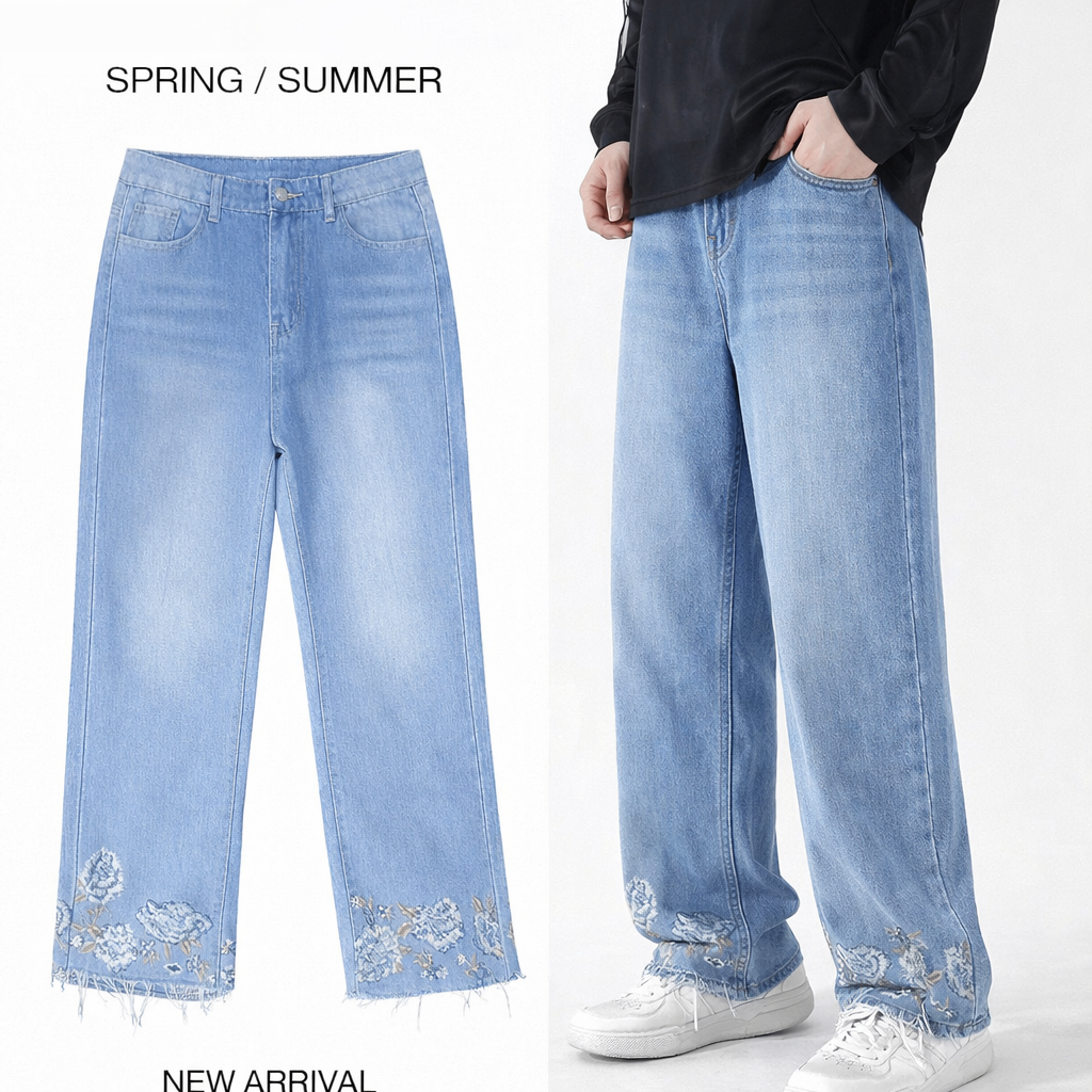 Découvrez ces jeans larges pour femme, parfaits pour un look décontracté et tendance. Conçus en denim de qualité, ils offrent une coupe droite confortable et une broderie détaillée au bas des jambes. Idéal pour les sorties quotidiennes ou les occasions décontractées.