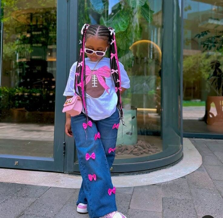 Ces jeans pour filles sont parfaits pour un look tendance et amusant. Ils sont ornés de rubans roses qui ajoutent une touche de féminité et de style. Conçus pour le confort et la liberté de mouvement.