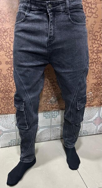 Jeans cargo homme noir délavé