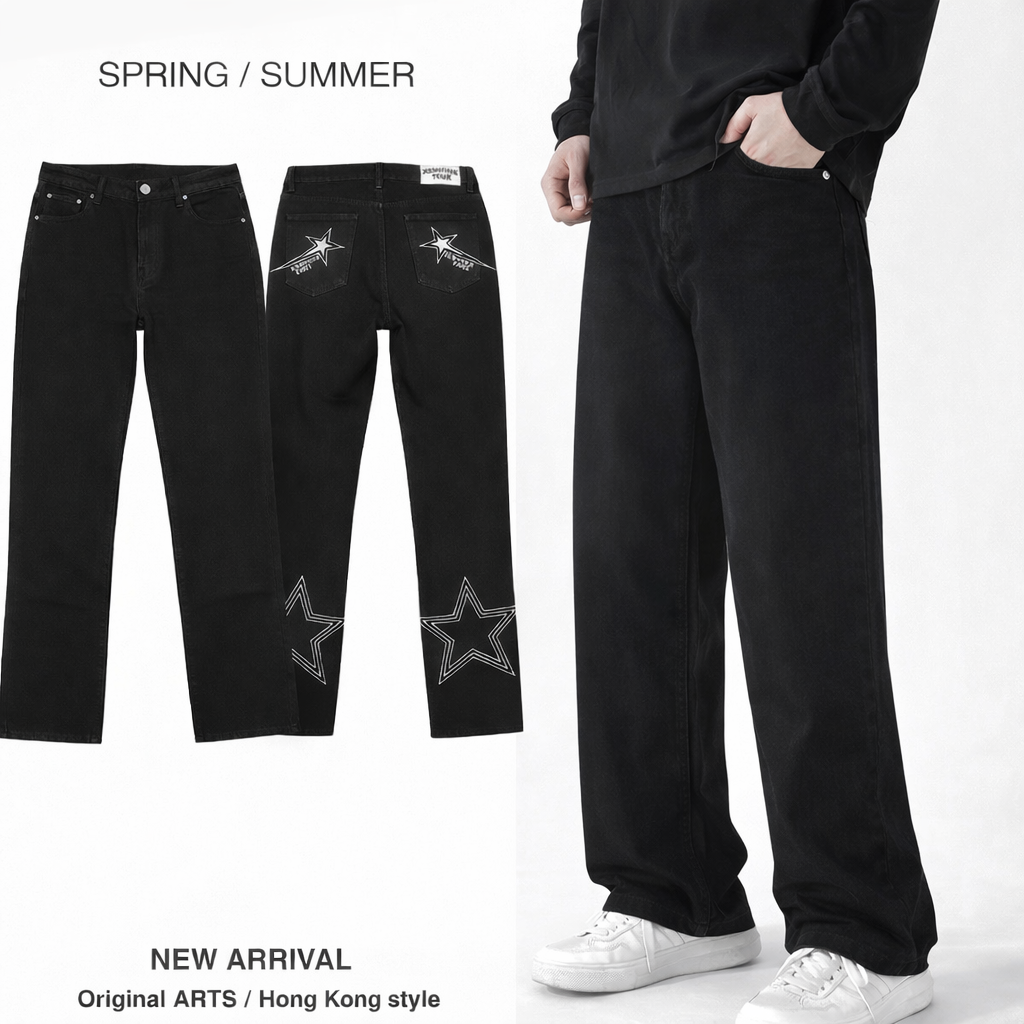 Découvrez ces jeans noirs pour homme, ornés de motifs d'étoiles uniques. Conçus pour un style urbain et moderne, ils allient confort et durabilité. Idéal pour une allure décontractée et tendance.