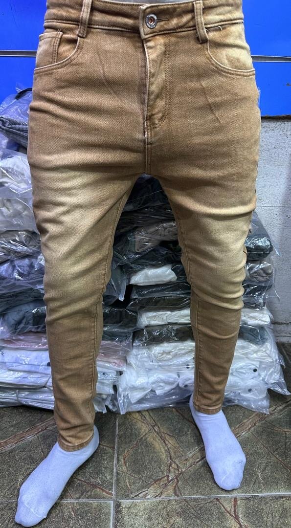 Jeans marron slim pour homme, confortable et élégant. Parfait pour un look décontracté ou élégant.