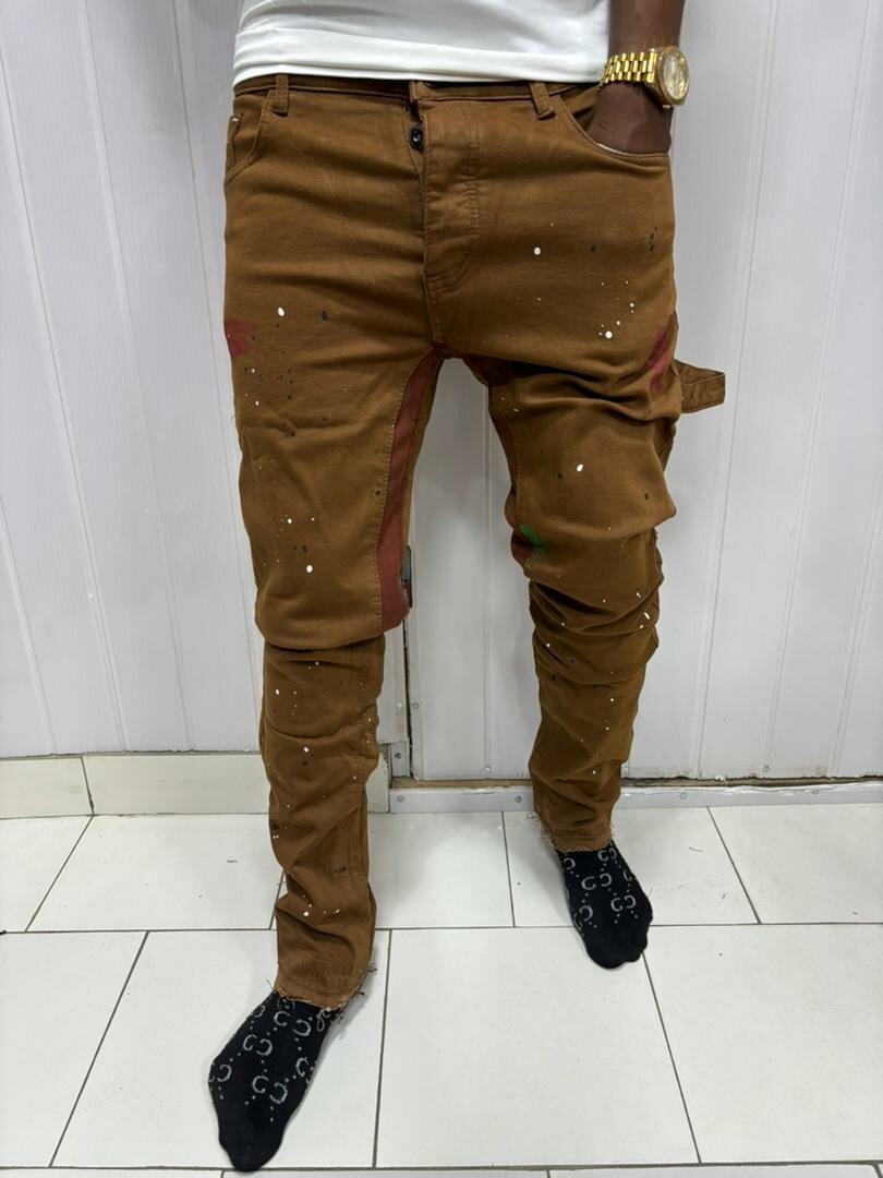 Découvrez ces jeans marron au design éclaboussé tendance, parfaits pour un look casual et urbain. Fabriqués avec soin pour un confort optimal et une allure audacieuse.