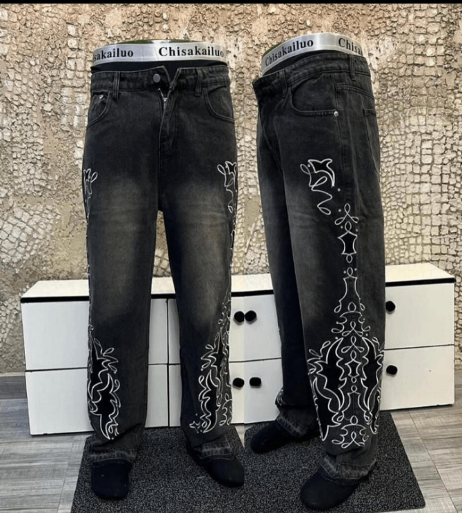 Optez pour ces jeans noirs élégants avec broderies distinctives, parfaits pour un look tendance. Fabriqués avec un denim de haute qualité, ces jeans sont confortables et résistants. Style idéal pour une sortie décontractée ou une occasion spéciale, ils compléteront parfaitement votre garde-robe moderne. Disponibles en plusieurs tailles pour un ajustement parfait.