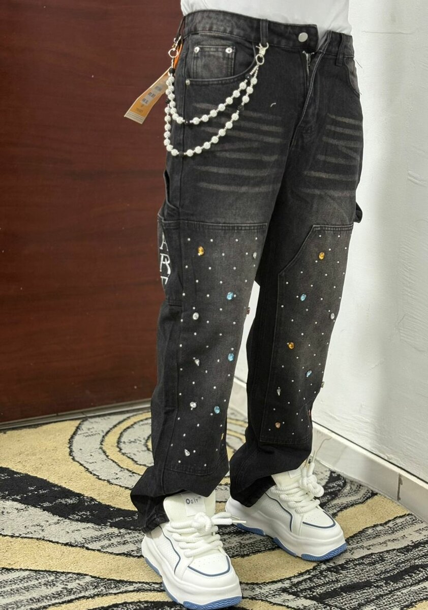 Découvrez nos jeans tendance avec motifs uniques et chaîne décorative. Parfaits pour un style urbain et moderne, ces jeans sont un ajout audacieux à toute garde-robe. Exprimez votre personnalité avec ce look distinctif!