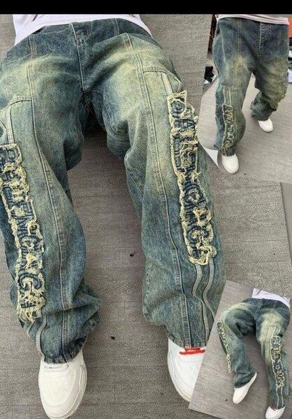 Craquez pour nos jeans audacieux, ornés de motifs uniques et de détails déchirés. Parfait pour un look urbain et stylé, ces jeans vous assurent une allure moderne et originale. Idéal pour les amateurs de mode à la recherche d'une pièce distinctive.