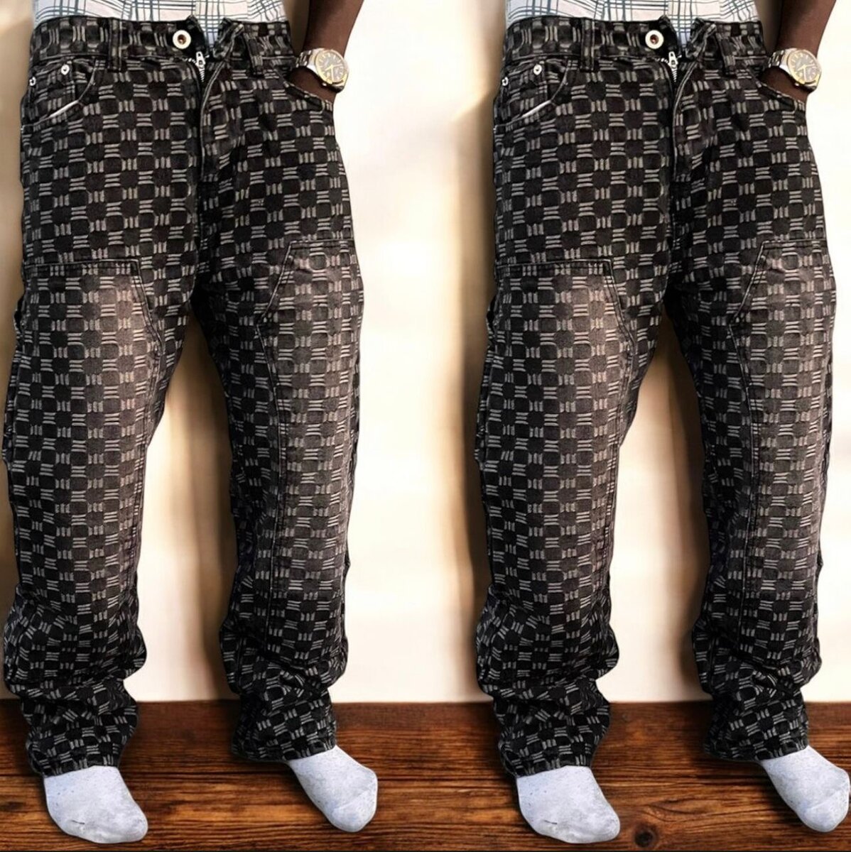 Découvrez ces jeans modernes avec des motifs uniques pour un style audacieux et original. Parfaits pour un look décontracté ou stylé, ils sont confortables et durables. Faites une déclaration avec ces pièces distinctives!