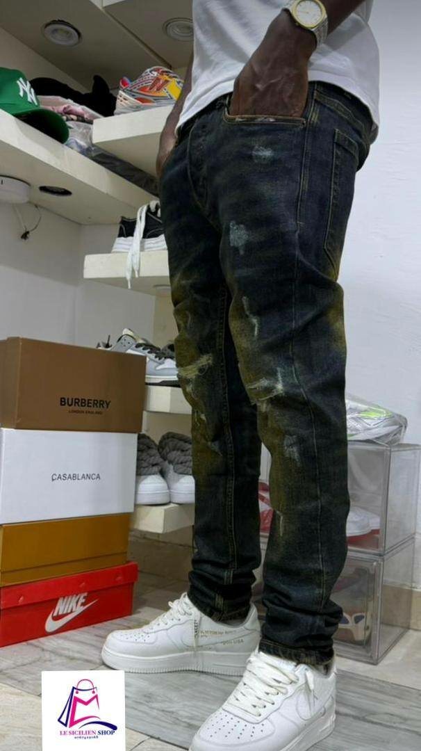 Découvrez ces jeans modernes pour homme, parfaits pour un style urbain et décontracté. Conçus en denim de haute qualité, ils disposent de motifs originaux qui ajoutent du caractère à votre tenue. Idéal pour le quotidien ou une sortie entre amis, associez-les à vos baskets favorites pour un look parfait. Ne laissez pas passer l'opportunité d'ajouter ces incontournables à votre garde-robe!