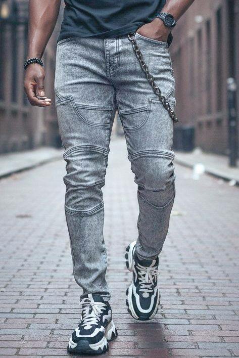 Découvrez ces jeans urbains tendance pour hommes, parfaits pour un style moderne et audacieux. Fabriqués avec des matériaux de haute qualité, ils sont dotés de détails délavés et de motifs audacieux qui se démarquent. Idéal pour une sortie en ville, ces jeans allient confort et mode. Adoptez un look unique et sûr de vous avec ces incontournables du dressing masculin.
