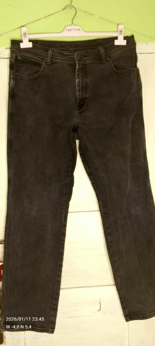 Jeans Wrangler noir pour homme, coupe regular W36 L32. Confortable et stylé, parfait pour un usage quotidien. Idéal pour un look décontracté ou chic.