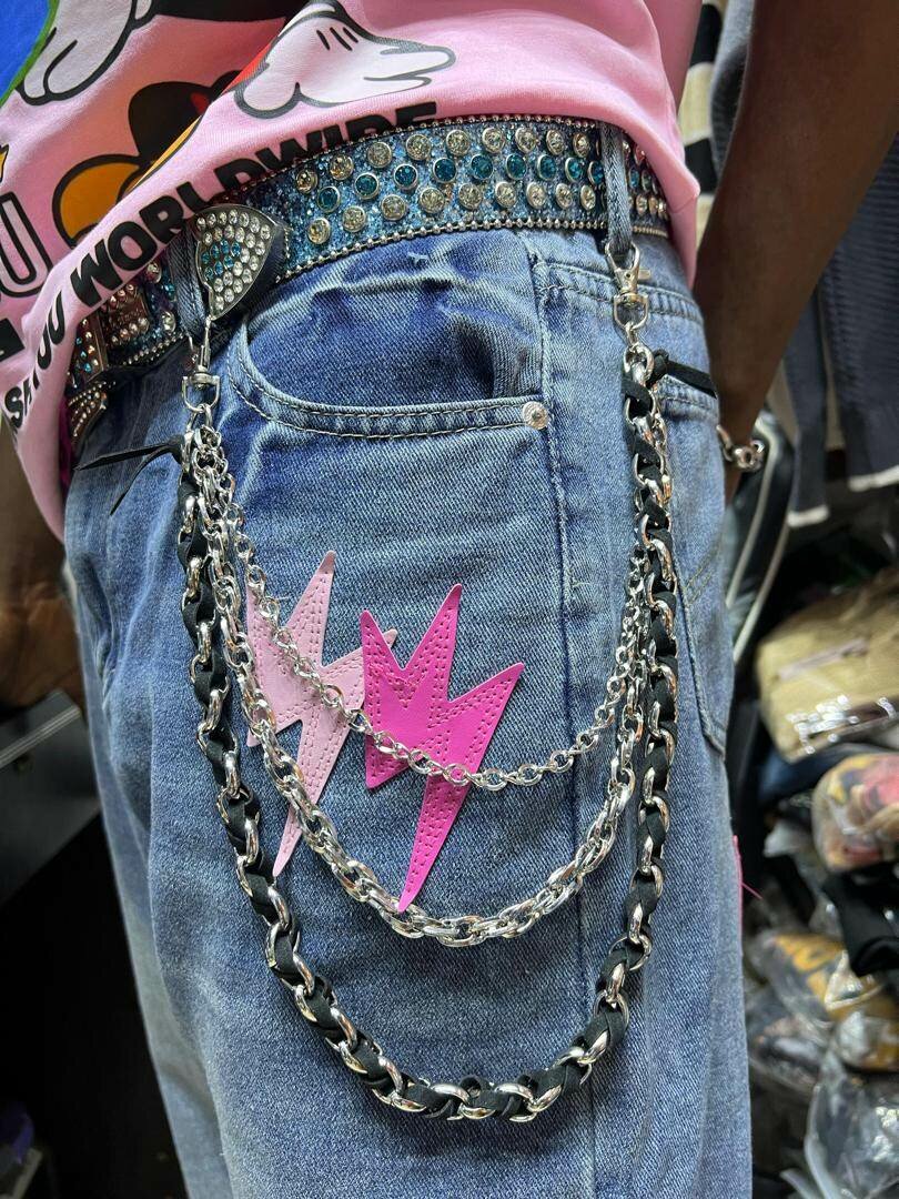 Elevate Your style with Our luxury Stretch fit jeanswith a side chain for drip featuring a comfortable fit for a cool Price.