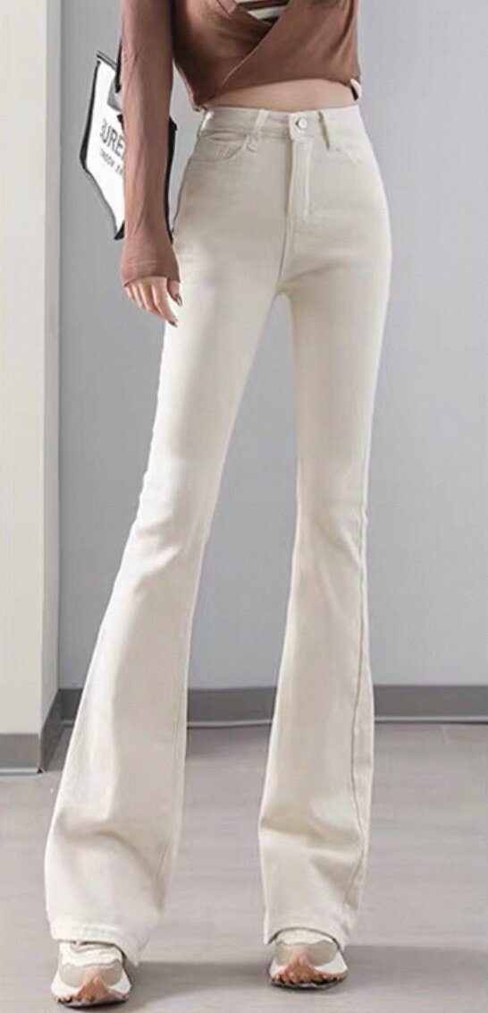 Хлопковые джинсы из эластичной ткани в цвете айвори, обхват талии до 109 см. Отдаю по цене ниже себестоимости