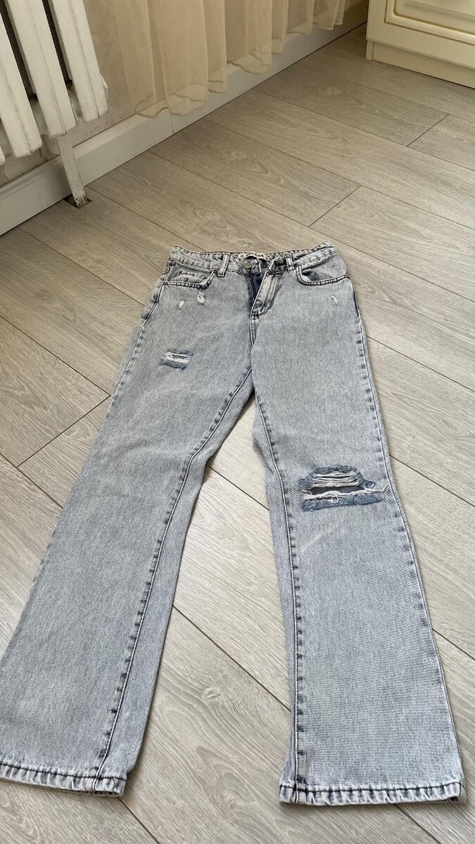 Джинсы прямые с высокой посадкой рваные трубы Турция