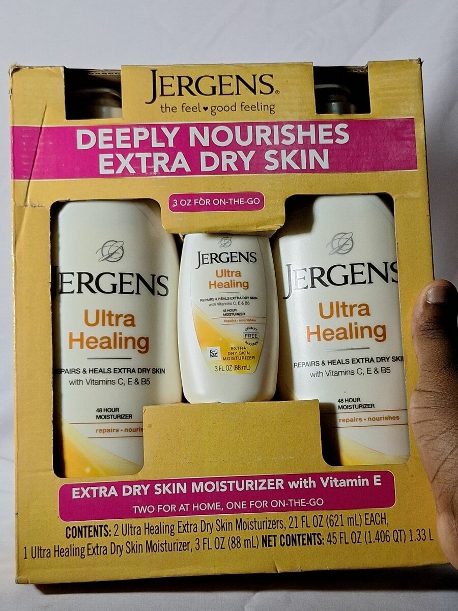 Découvrez le pouvoir hydratant du set Jergens Ultra Healing. Idéal pour la peau très sèche, ce lot contient des vitamines C, E et B5 qui réparent et nourrissent en profondeur. Parfait pour une peau douce et lisse, que ce soit à la maison ou en déplacement. Procurez-vous une hydratation durable et éprouvée.