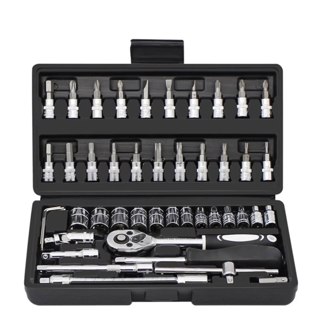 Ce jeu de douilles métriques 46 pièces est idéal pour les bricoleurs et professionnels. Comprend des embouts, des douilles et des poignées de cliquet pour divers besoins de réparation et d'assemblage. Fabriqué en acier de haute qualité pour une durabilité maximale. Idéal pour les projets à la maison ou en atelier. Transport pratique grâce à sa mallette compacte.