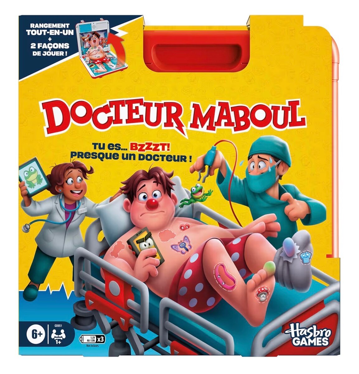 Le jeu incontournable pour développer la dextérité et la concentration des enfants. Avec Docteur Maboul, devient le chirurgien en chef en retirant les pièces sans déclencher le buzzer ! Amusement garanti pour toute la famille.