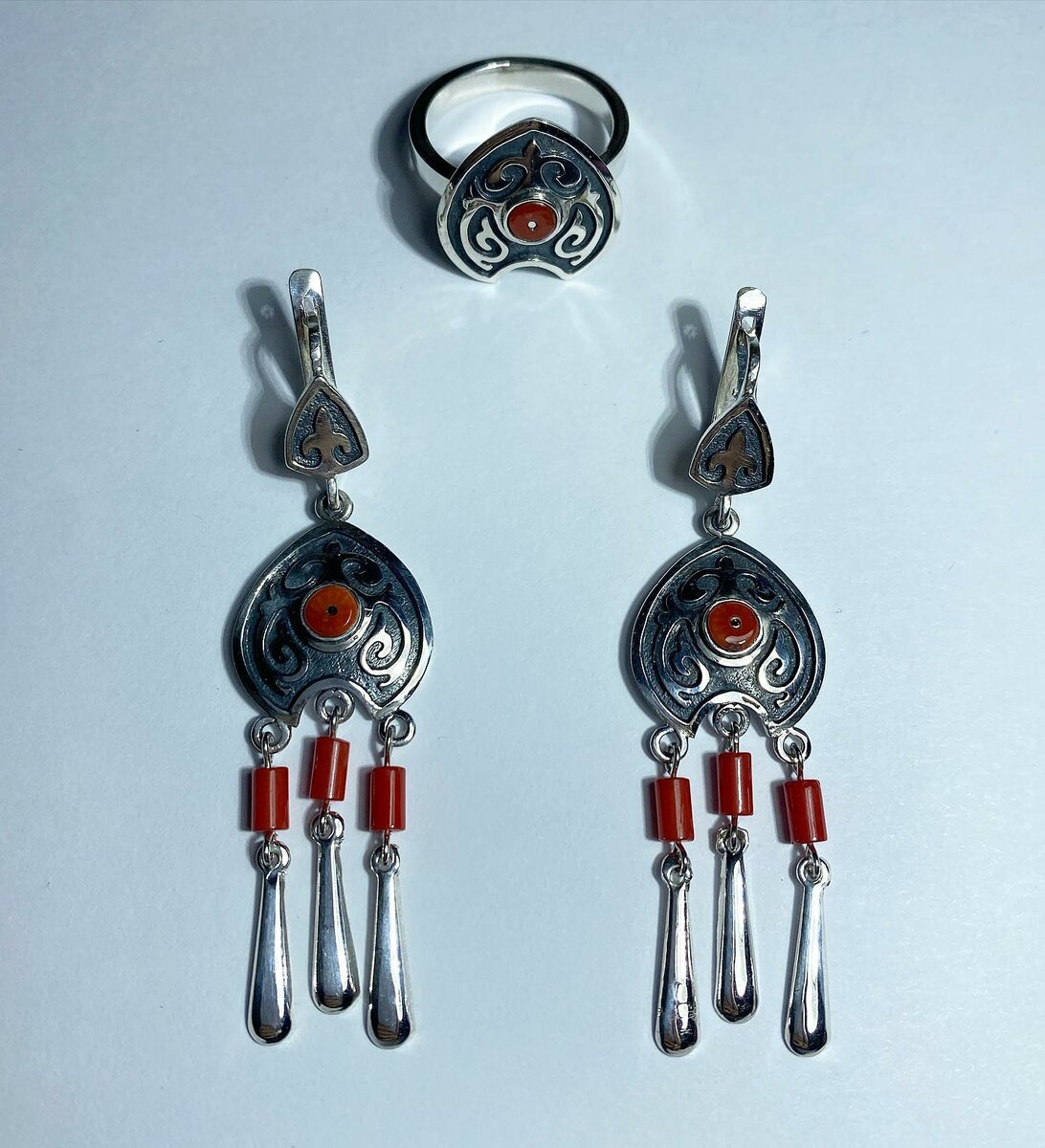 проба:925 качество: 💯 Ручная работа 😉 в комплект входит: кольцо, серьги, кулон.