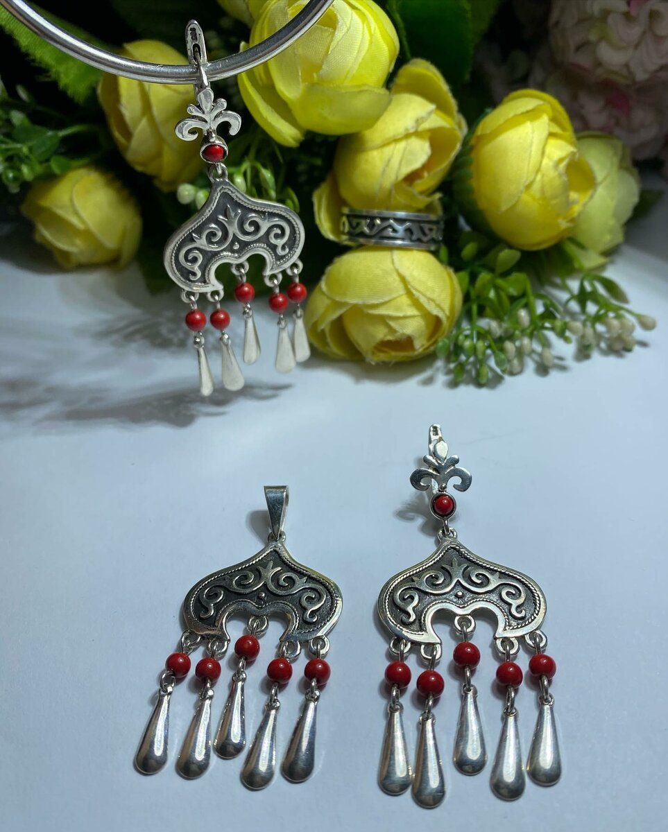 проба:925 качество: 💯 Ручная работа 😉 в комплект входит: кольцо, серьги, кулон.